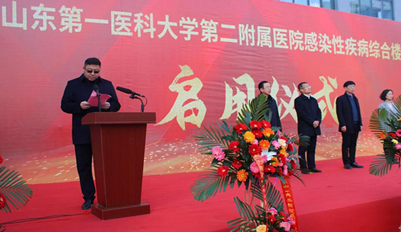 附屬醫(yī)院?jiǎn)⒂脙x式領(lǐng)導(dǎo)講話(huà)照片:山東第 一醫(yī)科大學(xué)第 二附屬醫(yī)院感染性疾病綜合樓占地面積約2100平方米,設(shè)計(jì)建筑面積7980平方米,地下一層,地上五層。項(xiàng)目大樓建設(shè)遵循“平戰(zhàn)結(jié)合、科學(xué)、功能完善”的原則,嚴(yán)格按照感染性疾病要求設(shè)計(jì)流程,集門(mén)診、檢查、住院于一體,日常服務(wù)于常見(jiàn)傳染病的診療和救治,遇到重大傳染病疫情時(shí),可以迅速轉(zhuǎn)變成集中收治患者的高標(biāo)準(zhǔn)戰(zhàn)時(shí)救治基地。該項(xiàng)目為山東省醫(yī)療衛(wèi)生系統(tǒng)17個(gè)主要項(xiàng)目之一,項(xiàng)目的啟動(dòng)對(duì)提高醫(yī)院乃至泰安市和山東省的公共衛(wèi)生服務(wù)與感染性疾病防控能力、保障人民群眾生命安全和身體健康具有重要意義。